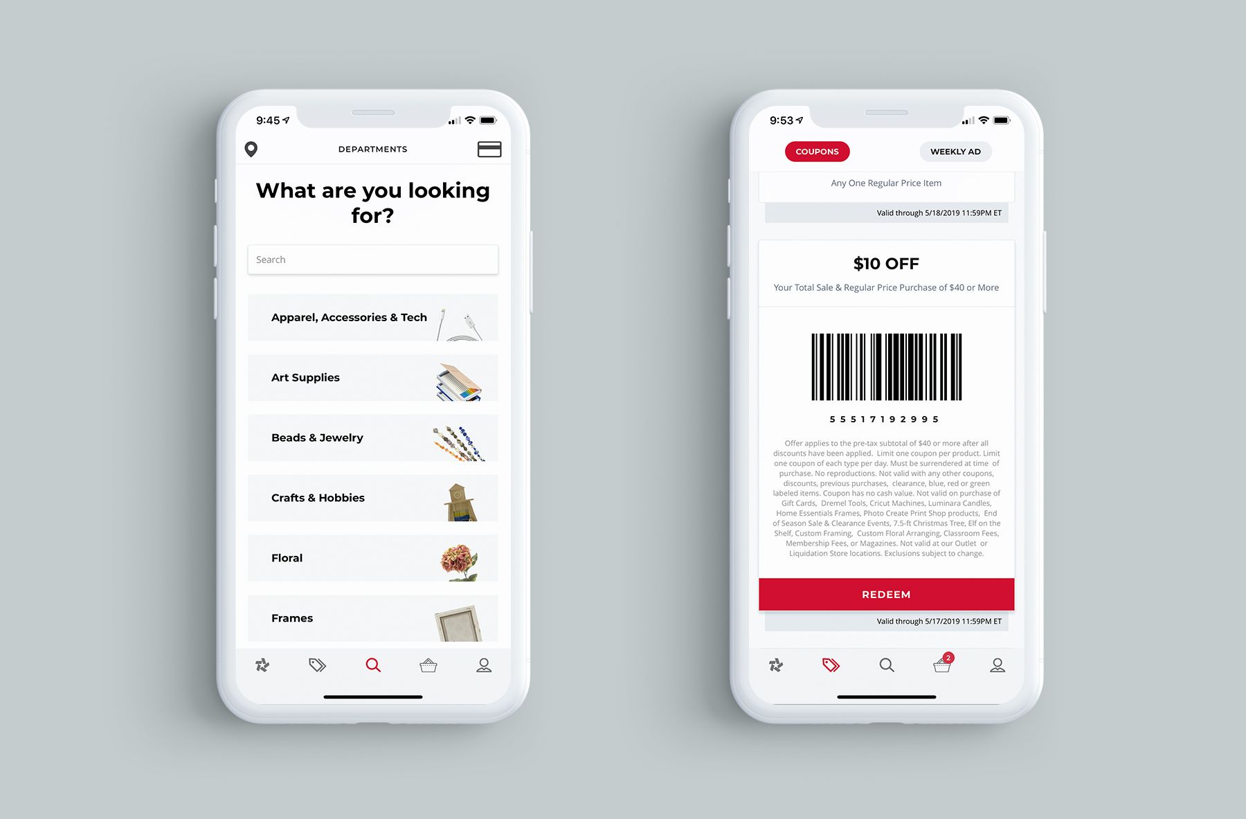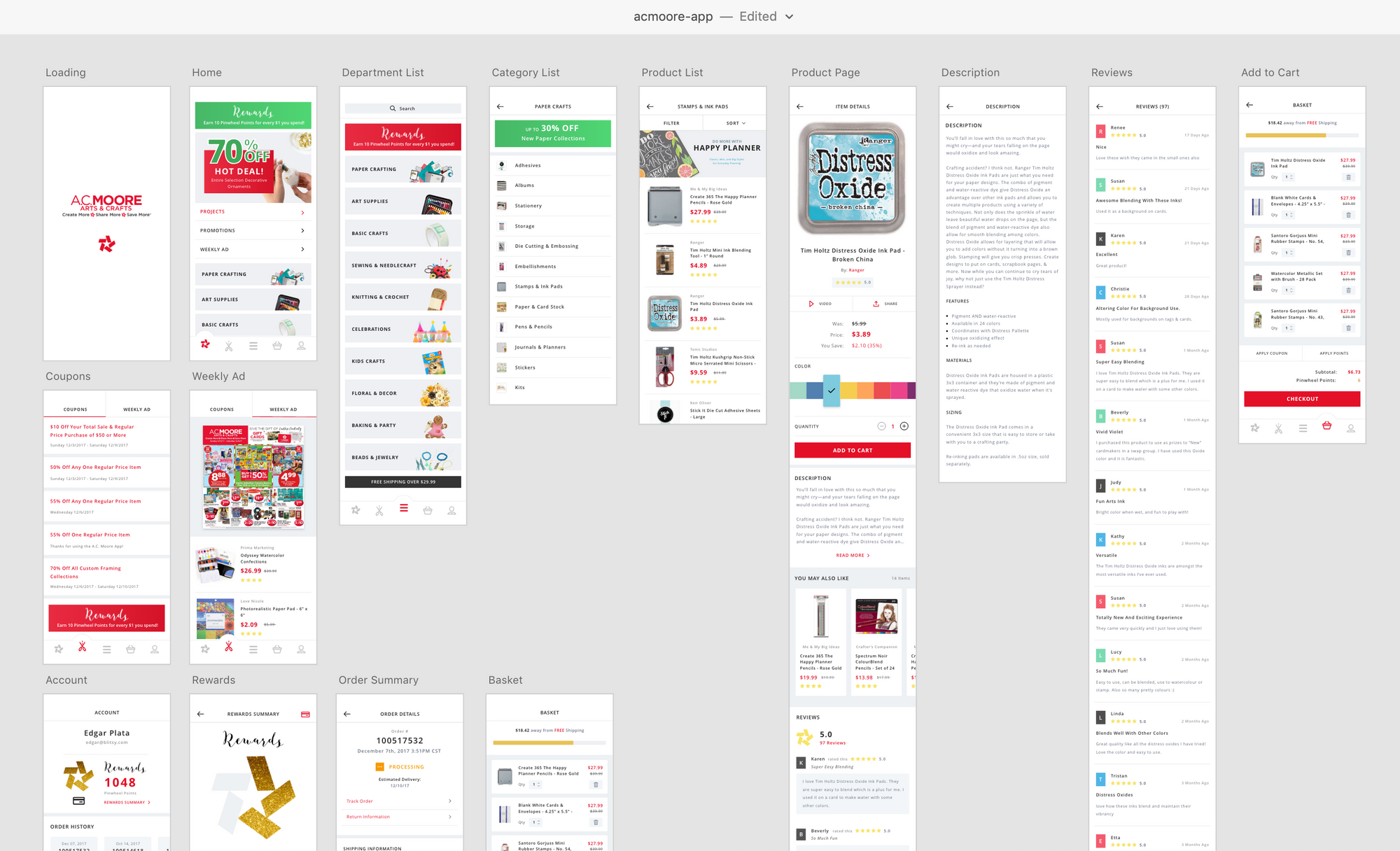The previous version of the app was created by an external vendor, prior to Blitsy being acquired by A.C. Moore, and did not have the ability to shop or view actual products. It was plagued with errors and needed a full interface revamp to improve customers' online and in-store shopping experience.